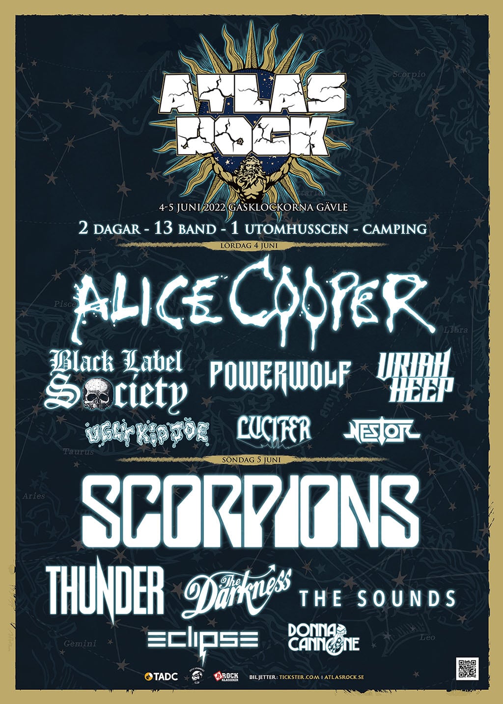 Atlas Rock är den nya festivalen vid Gasklockorna på Brynäs i Gävle. Helgen 4-5 juni 2022 är det dags för den första upplagan och på scen kommer Scorpions, Alice Cooper och en rad andra hårdrocksartister att stå.
