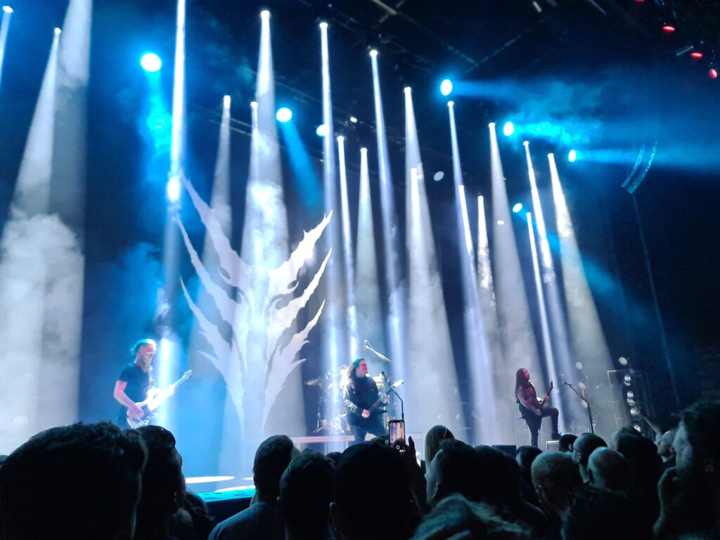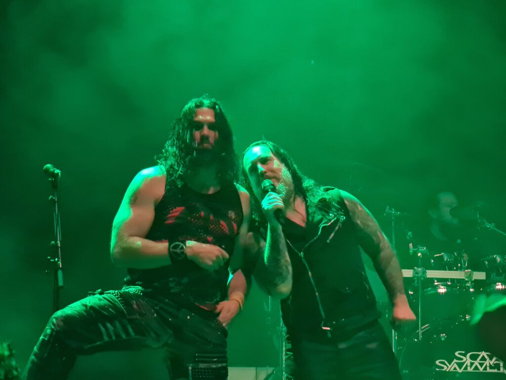 Först ut denna härliga kväll var Scar Symmetry som drabbades av några problem där ljudet dog ett par gånger under första låten samt att ljuset gick på i lokalen under andra låten. De lät dock dessa störmoment inte stå i vägen för en lysande leverans av sitt set. Allt satt verkligen musiktekniskt och sången samt spelglädjen från radarparet Roberth Karlsson samt Lars Palmqvist var verkligen på topp. Roberth har dessutom den där sköna djupa growling-klangen som påminner lite om Johan Hegg (Amon Amarth), helt underbar. Låten Scorched Quadrant från den kommande plattan som försenats ett antal gånger påminner i början lite om en twistad version av Pull Me Under (Dream Theater) men drar oss in mer i dödsmetalen under låtens gång och det kommer verkligen bli spännande att höra deras nya album som kommer i början av juni i år. En grym start på kvällen!