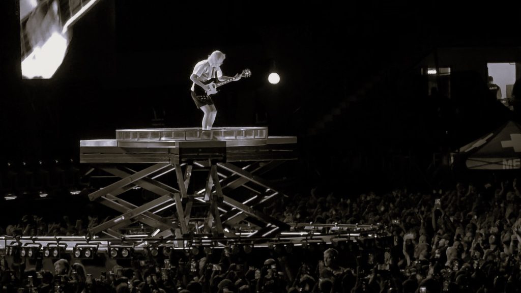 Under en av många musikvideos på Youtube läste jag för ett tag sedan följande kommentar: “Elvis was the king of Rock N Roll but AC/DC IS Rock N Roll”. Det har varit en händelserik resa för dessa gudfädrar som gjorde sin första konsert i Sverige 1976, närmare bestämt i Halland som förband till dansbandet Jigs. Det är viss skillnad på dansbanan Cortina i Vinberg och att nu inneha publikrekordet för ett hårdrocksband på Nordens största arena. Man kan få gåshud av mindre märkvärdiga skeenden, så att säga. Av dem som står på Ullevis scen denna fredagskväll är det dock bara gitarristen och grundpelaren Angus Young som också var med redan 1976. Brorsan Malcolm gick bort 2017 och trummisen Phil Rudd samt basisten Cliff Williams (som båda också var med under 70-talet) deltar inte på den pågående turnén. Istället är det de inhyrda Matt Laug & Chris Caney samt Youngbrödernas brorson Stevie som håller ställningarna tillsammans med Angus och Brian Johnson, som varit med sedan 1980.